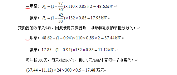 四、一甲泵、氨泵和氨水泵的變頻調速節能