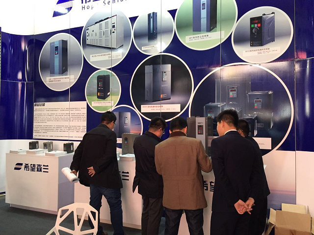 Hope810G防水系列變頻器展示臺,駐足觀(guān)看的客戶(hù)絡(luò )繹不絕,客戶(hù)對森蘭緊貼市場(chǎng)需求的技術(shù)創(chuàng )新能力,有了更直觀(guān)的認識。