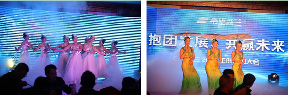 隨著(zhù)夜幕的降臨,一場(chǎng)盛大的晚宴在金碧輝煌的家園國際酒店舉行,晚宴上由森蘭員工自編自演的文藝節目,為來(lái)賓們帶了歡樂(lè ),同時(shí)也展示了森蘭人多才多藝的風(fēng)采。隨著(zhù)現場(chǎng)微信紅包派送及各種抽獎活動(dòng)的進(jìn)行,晚宴氣氛爆棚。