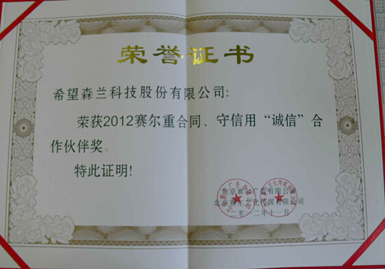 在2012年11月30日,在北京舉行的第二屆設計師優(yōu)選品牌評選活動(dòng)上,森蘭變頻器憑借過(guò)硬的產(chǎn)品質(zhì)量和良好的市場(chǎng)口碑在榮獲““設計師優(yōu)選十大變頻品牌”稱(chēng)號的同時(shí),還榮獲了行業(yè)媒體頒發(fā)的重合同、守信用“誠信”合作伙伴獎。